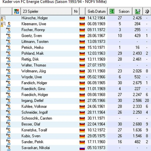 Saisonübersicht 1993/94 FC Energie Cottbus